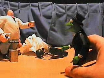 Professor P (whose real name is hard to pronounce) tells Kermit that he can make something out of nothing. Professor P tries all sorts of magic words but couldn't create anything. Kermit said that only God can create something out of nothing so the magician tried to transform Kermit's camera into nothing instead. Pounding, wrestling, and even using a sword doesn't seem to turn something into nothing. Professor P tries his last resort by making the camera explode. The camera disappeared, but made a big mess in Kermit's studio.